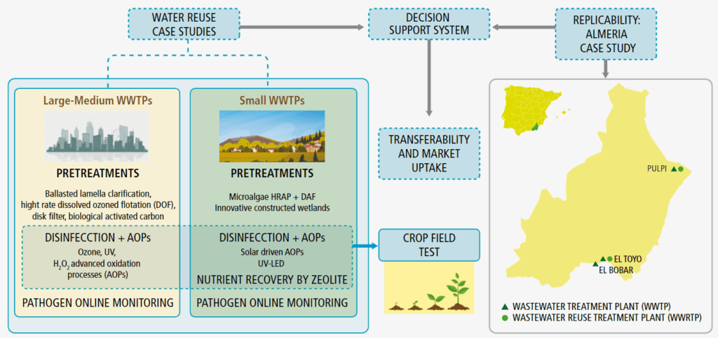 The project also includes a replicability analysis. For this analysis, wastewater reuse in the province of Almeria will be studied. This activity will not only provide information of the local incidence of wastewater reuse, but valuable data to be extrapolated to the EU. Several WWTP will be evaluated among them El Bobar WWTP and El Toyo WWTP to name a few.